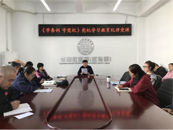 党委委员、工会主席王忠国以《明确政治纪律要求 强化核心意识》为党课主题,结合分管学生工作和《条例》的内容,强调要把党纪学习教育与开展群众身边不正之风和腐败问题集中整治统筹起来,以优良党风带动校风、教风、学风。