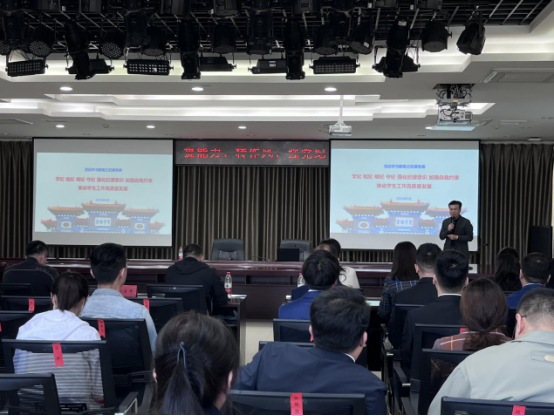 党委委员、副校长李金贵以《强化纪律意识 加强自我约束》为党课主题,宣讲解读《条例》并要求全体党员持续改进作风,坚持真抓实干,勇于担当作为。