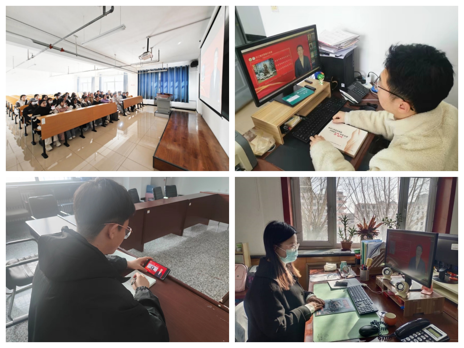 为全面贯彻党的教育方针,落实立德树人根本任务,按照省委教育工委工作部署,3月22日我校组织收看龙江高校思政大讲堂“开学第一课”——黑龙江优秀精神网络思政大课。课上,黑龙江大学马克思主义学院张磊,大庆铁人王进喜纪念馆王立志,北大荒融媒体发展有限公司、北大荒青年讲师团温暖三位主讲人,生动讲述了中国共产党人精神谱系中的东北抗联精神、大庆精神(铁人精神)、北大荒精神,带领师生深刻领会其内涵实质和时代魅力,凝聚自信自强的精神力量。