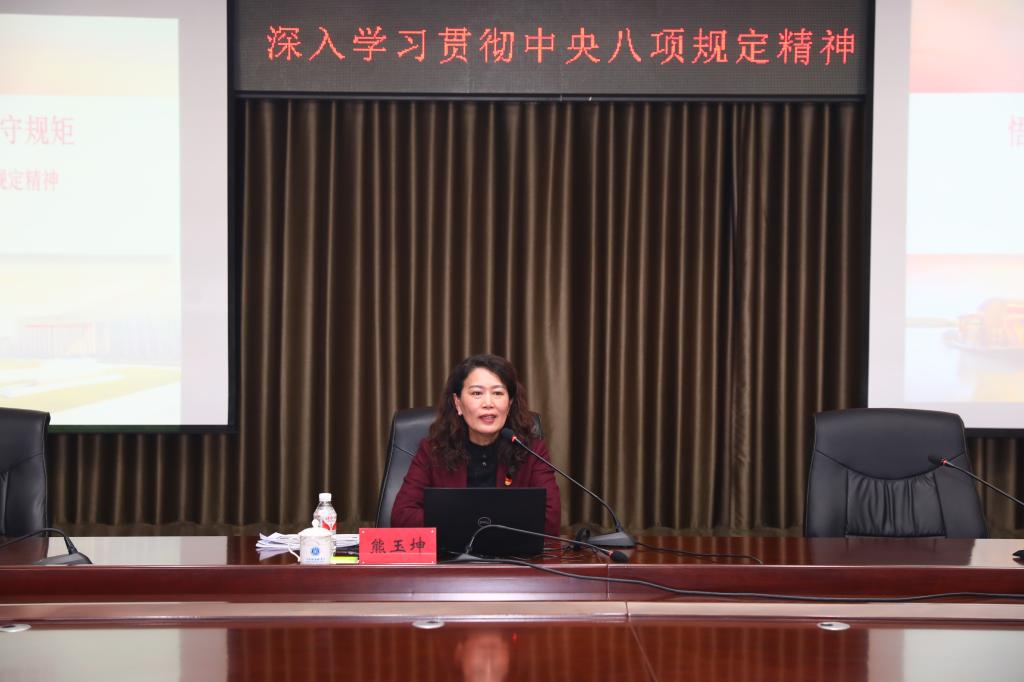 熊玉坤副教授从“学深悟透精神实质、谨言慎行严守规矩、脚踏实地担当作为”三个方面回顾了中央八项规定出台的背景,系统阐述了贯彻中央八项规定精神的重大意义,深入解读了中央八项规定精神的深刻内涵和时代价值,从理论高度和实践维度讲解了赓续中央八项规定精神的基本路径。